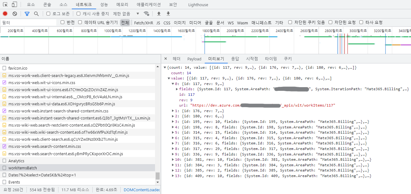 여기서는 _apis/wit/workItemsBatch 에 해당하는 workItemsBatch 항목이 해당 되겠네요.
