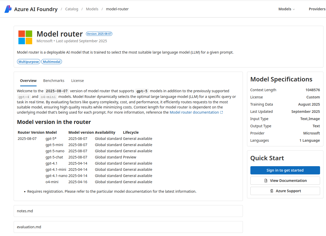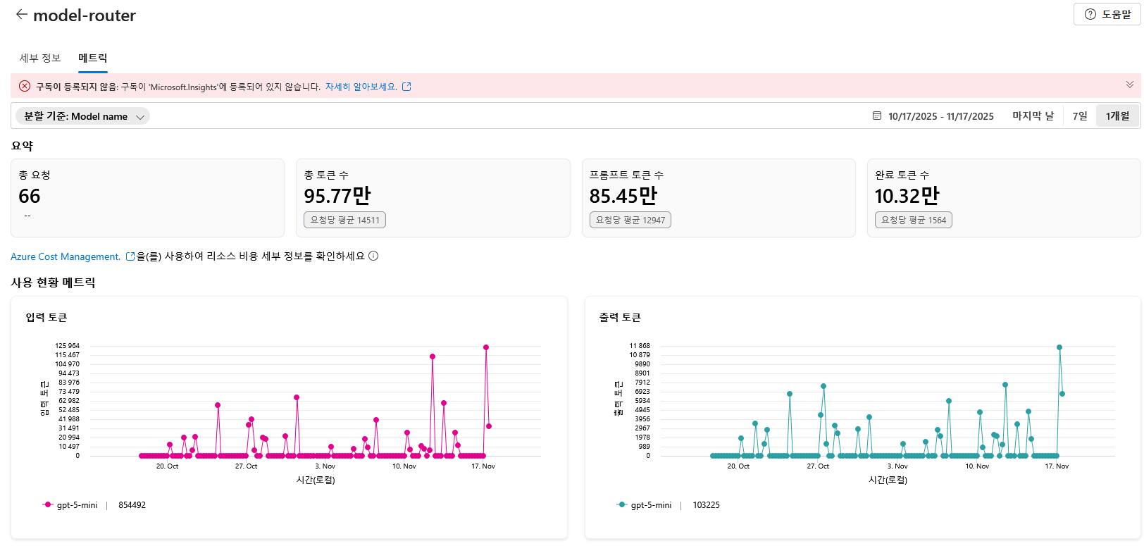 나의 경우는 회사에서 받아서 개인적으로 각종 개발 테스트 할 때 활용하는 Azure 구독이 있다보니, Azure AI Foundry 를 활용 해 보았다. 모델은 model-router 로 골라서 배포 하였다. 프롬프트가 들어오면, 프롬프트의 복잡도 등에 따라서 최신 Open AI GPT 모델 중 적합한 모델로 보내서 처리 해 주는 모델이다.